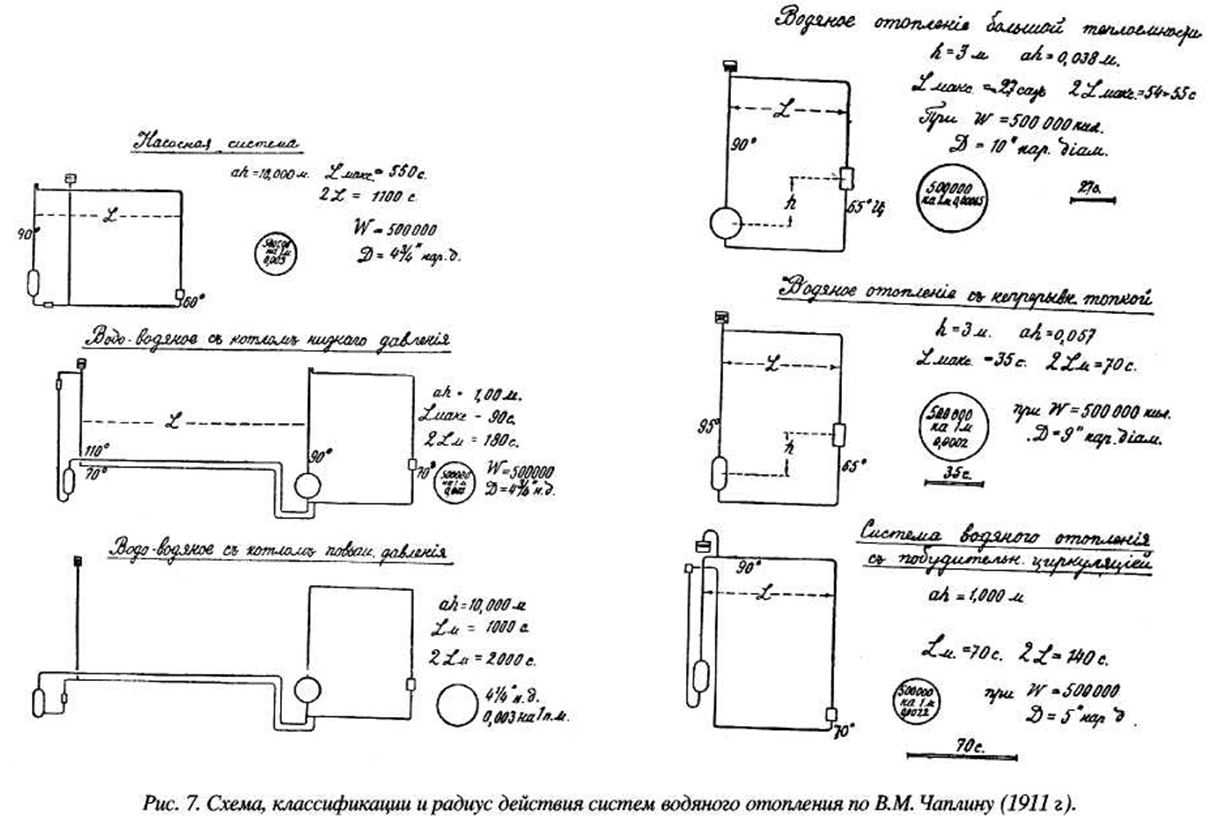 И не показать жалко, и показывать много тоже. Там же еще штук пять таких схем. По каждой схеме описание, по некоторым гидравлический расчет. Книга Уханова "Новые системы отопления" 1930год. Подробно расписывать не буду, только коротко.