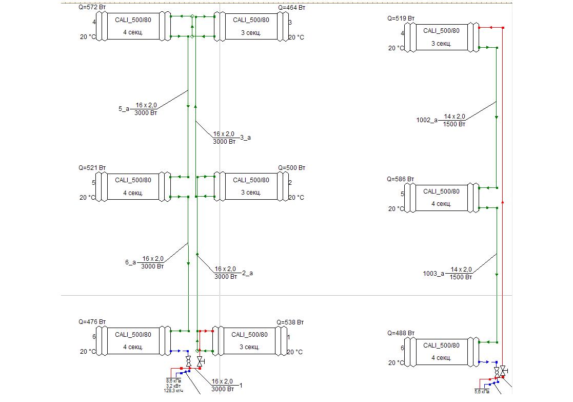 Сначала я рассчитывал двухтрубную систему отопления сервисного центра, но потом по просьбе ГИПа переделал ее в однотрубную с нижней разводкой и столкнулся с этой проблемой. Вот экспортированный из этой программы файл со схемой: