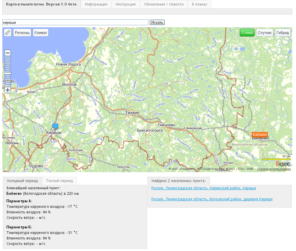 2. Если город отсутствует в СНиП, то можно найти ближайший с данными по климату.