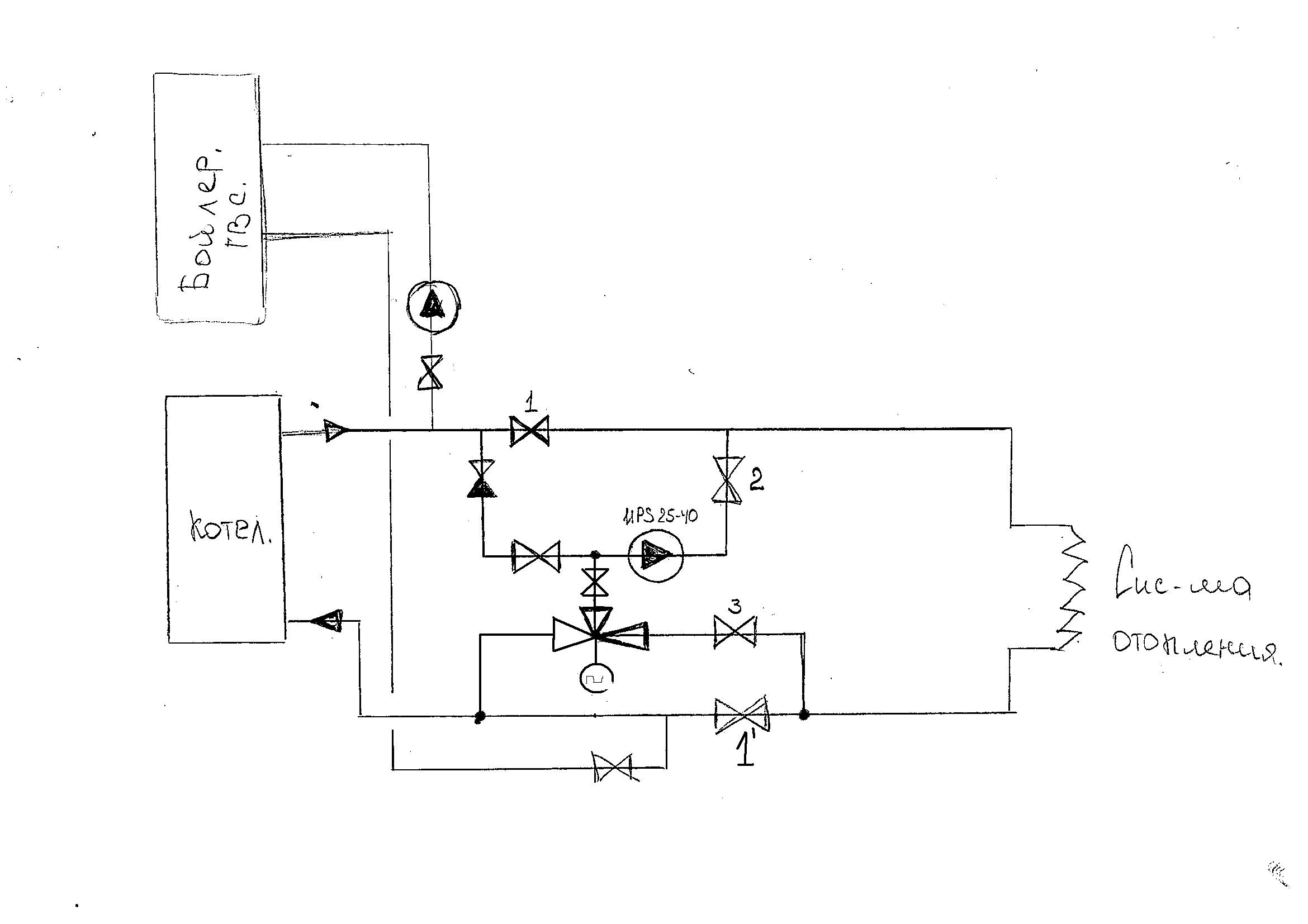 А сам трехходовой установлен, на мой взгляд, с перемудрием - оба потока в обход котла получаются. Надо разворачивать.