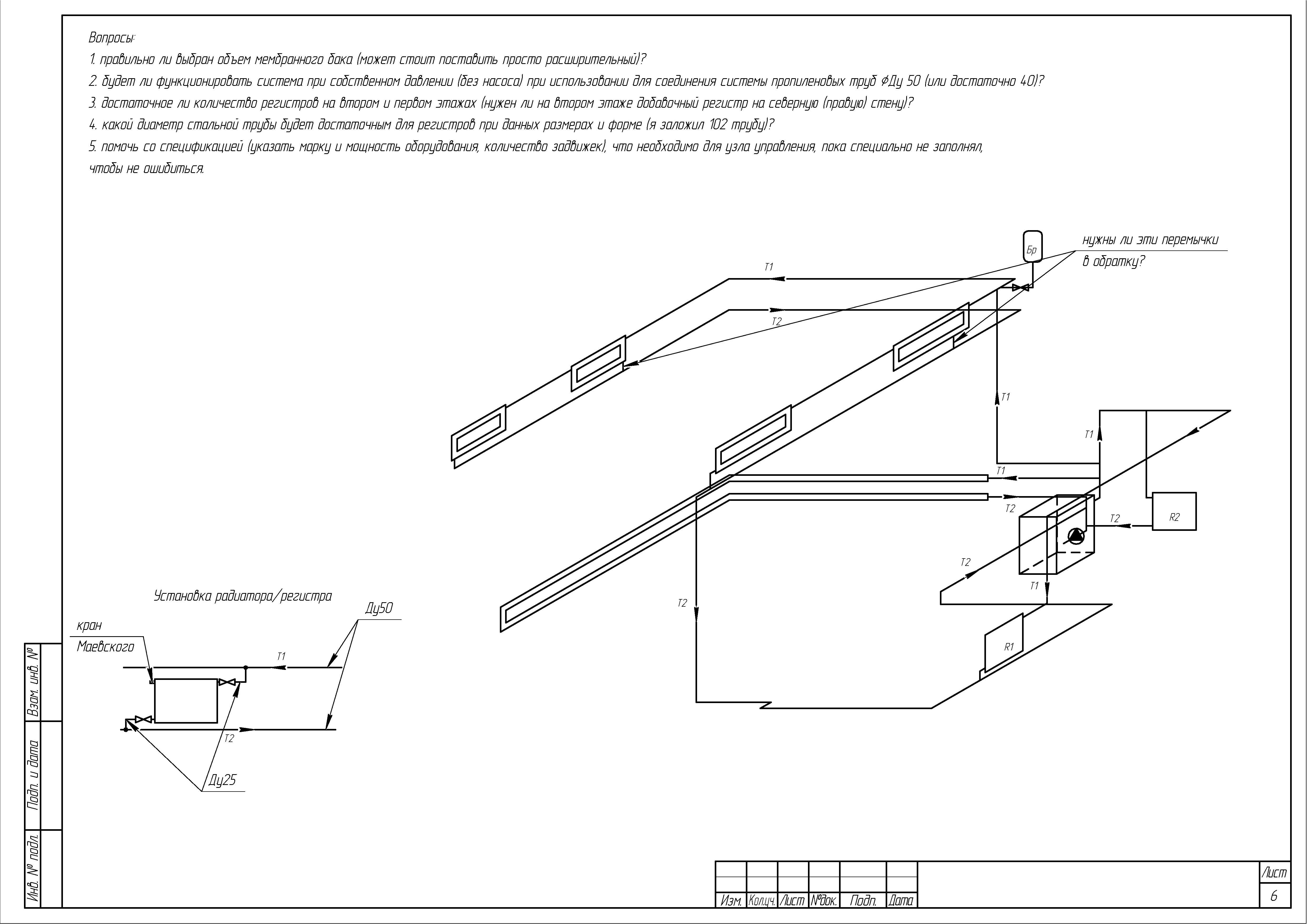 p.s. Потому и надо делать ЕЦ в стали. Для худшего контура это просто необходимо. Верхняя труба может быть и Ду50. Помимо "повышения" центра охлаждения контура, она даст гидравлический плюс - снижение сопротивлений. То же можно сказать и о стояках к радиаторам.