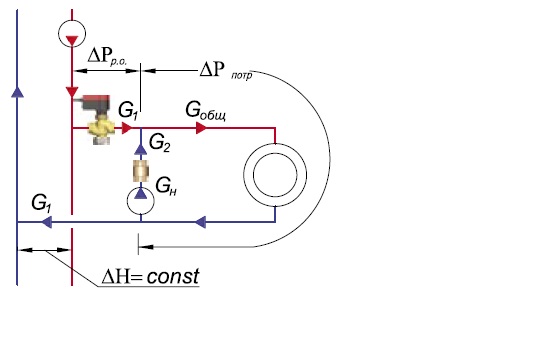 Т.е. Насос с ПЧ на перемычке и последовательно с ним, опять на перемычке(?!), регулятор расхода? Если расход через перемычку не меняется, то как меняется коэф. смешения?