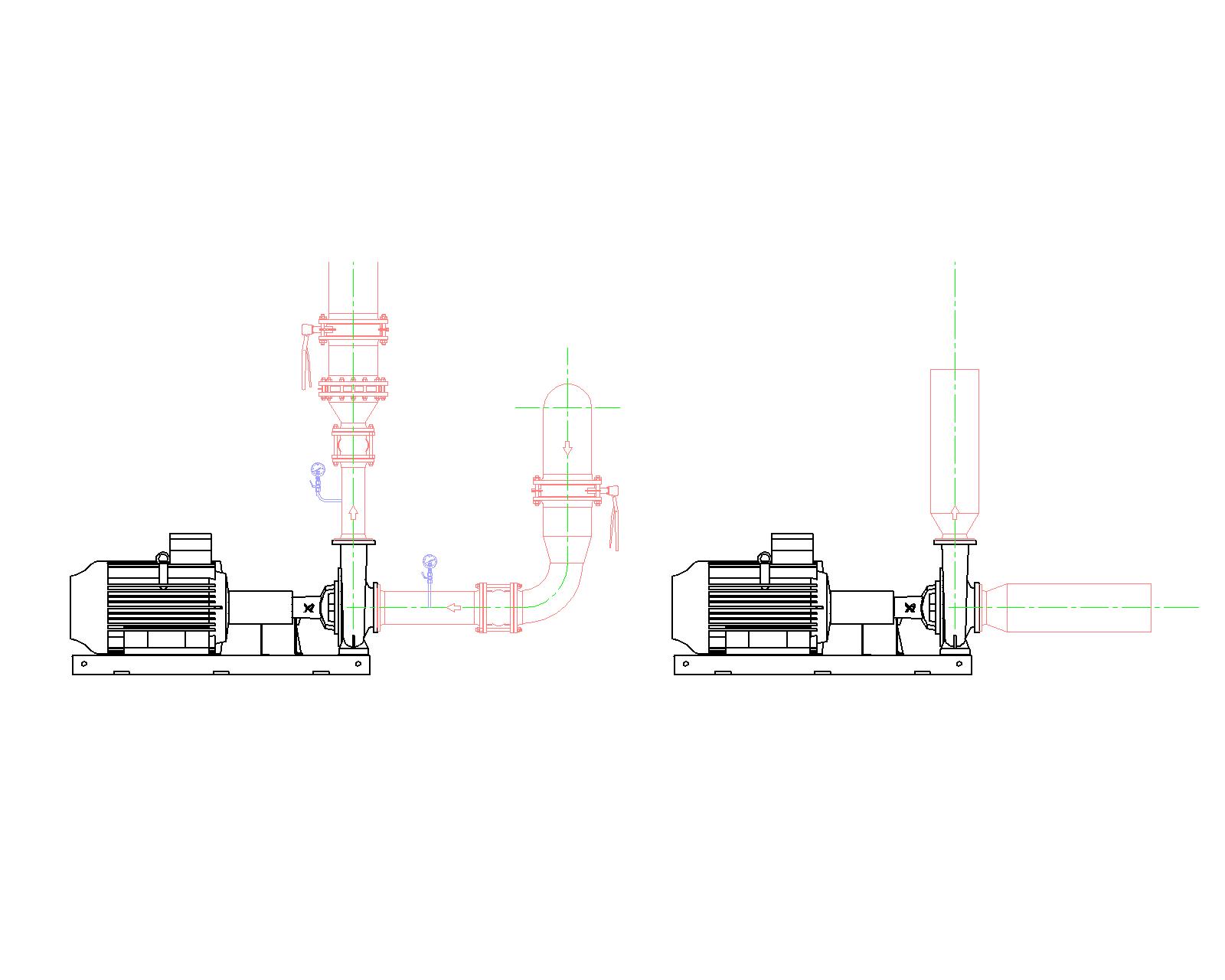 ИМХО правый вариант лучше. Сами так стараемся делать. Единственное - переход на всасывании эксцентрический закладывать нужно по всем рекомендациям, чтобы газ не скапливался. Второе - зачем проектировщик закладывал гибкие вставки? Правая схема может оказывать недопустимые воздействия на патрубки насоса