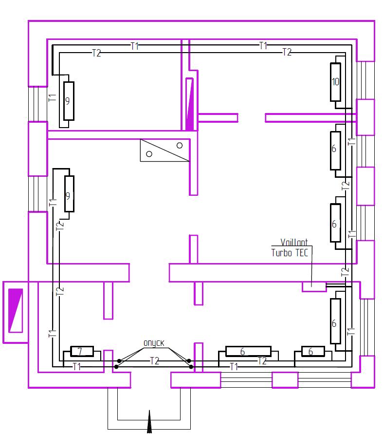 Третий вопрос по подключению самих отопительных приборов. Проектировщик строительной организации сказал, что подача воды должна идти снизу, а обратка – сверху (аксонометрическую схему прилагаю). Это правильно. Хотя чисто логически мне кажется что должно быть наоборот. Диагональное подключение, только подача подключена вверх а обратка вниз. Горячая вода остывая ведь будет опускаться вниз а не подыматься вверх… Как вы думаете будет правильней ?
