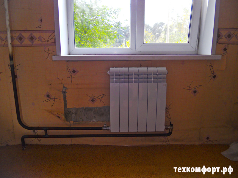 монтаж радиатора отопления в узкий проем : Н=500 мм (межосевое)