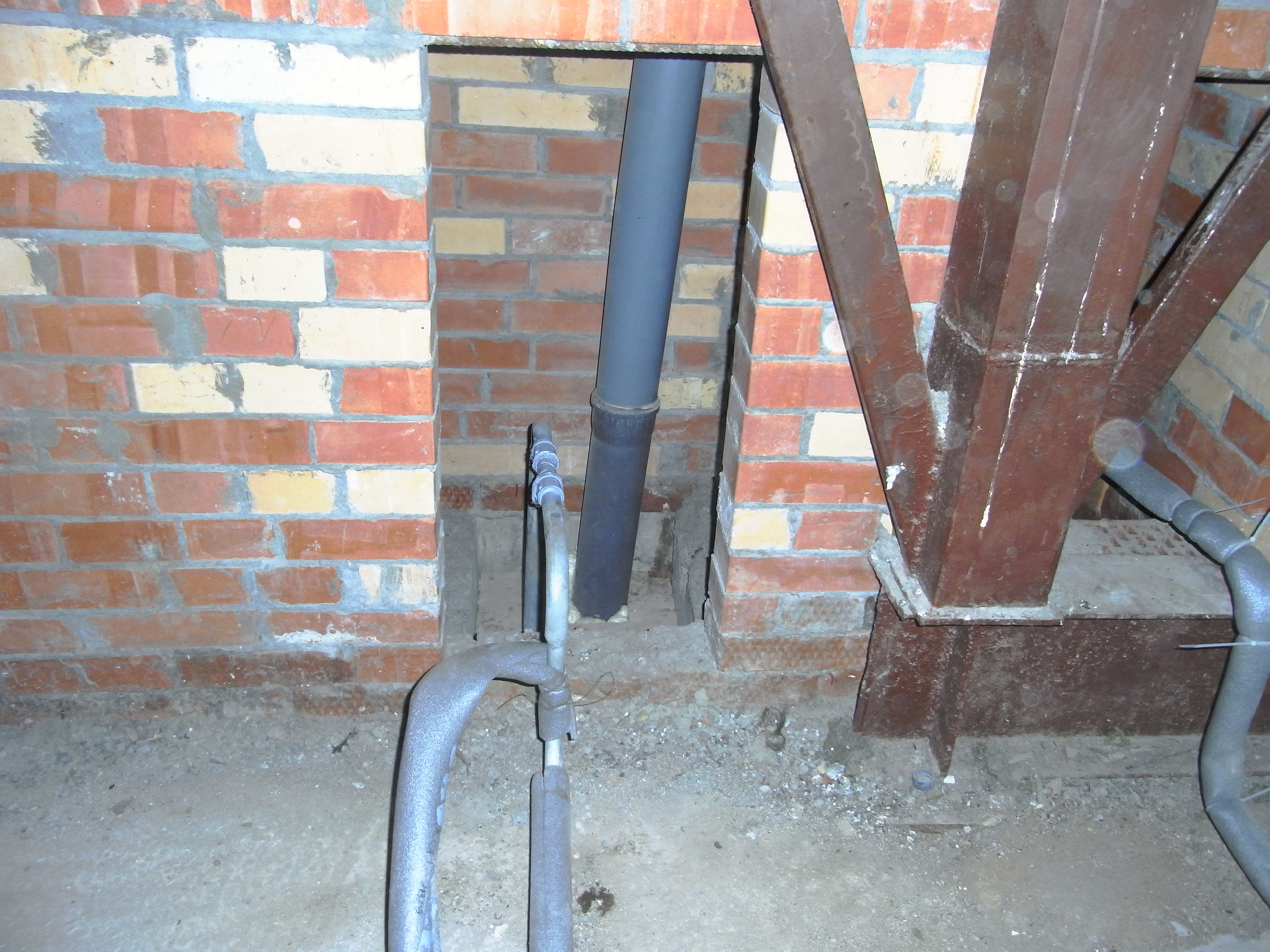Стало быть, в случае чего кипяток идёт через стенку, попадает в этот колодец и дальше там уходит в землю за пределами здания.
